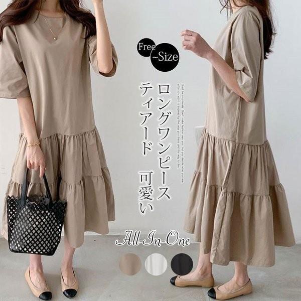 3色 ワンピース 大きいサイズ ロング マキシ ワンピ ハイウエスト ゆったり カジュアル 大人可愛い 韓国 オルチャン ファッション Cocotown